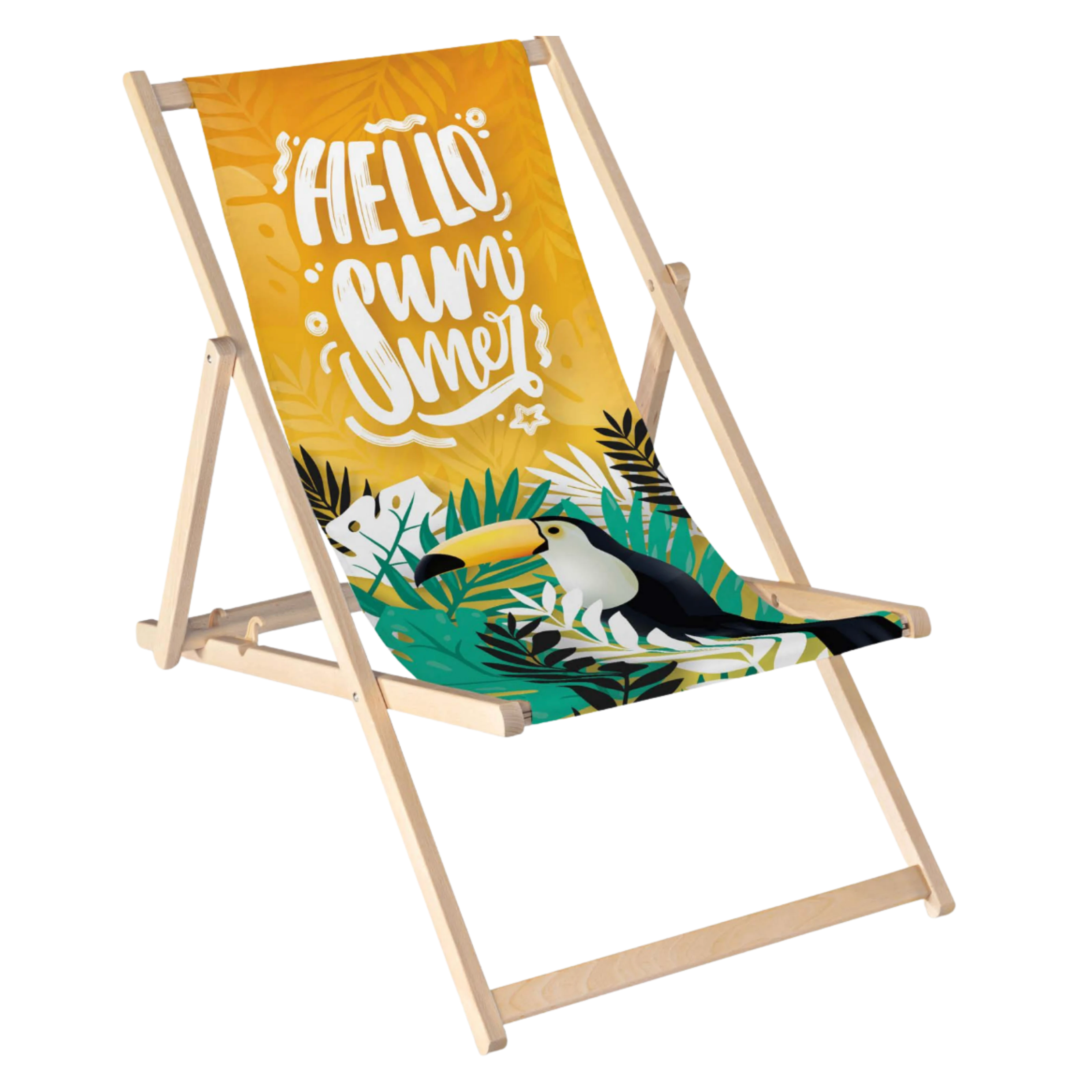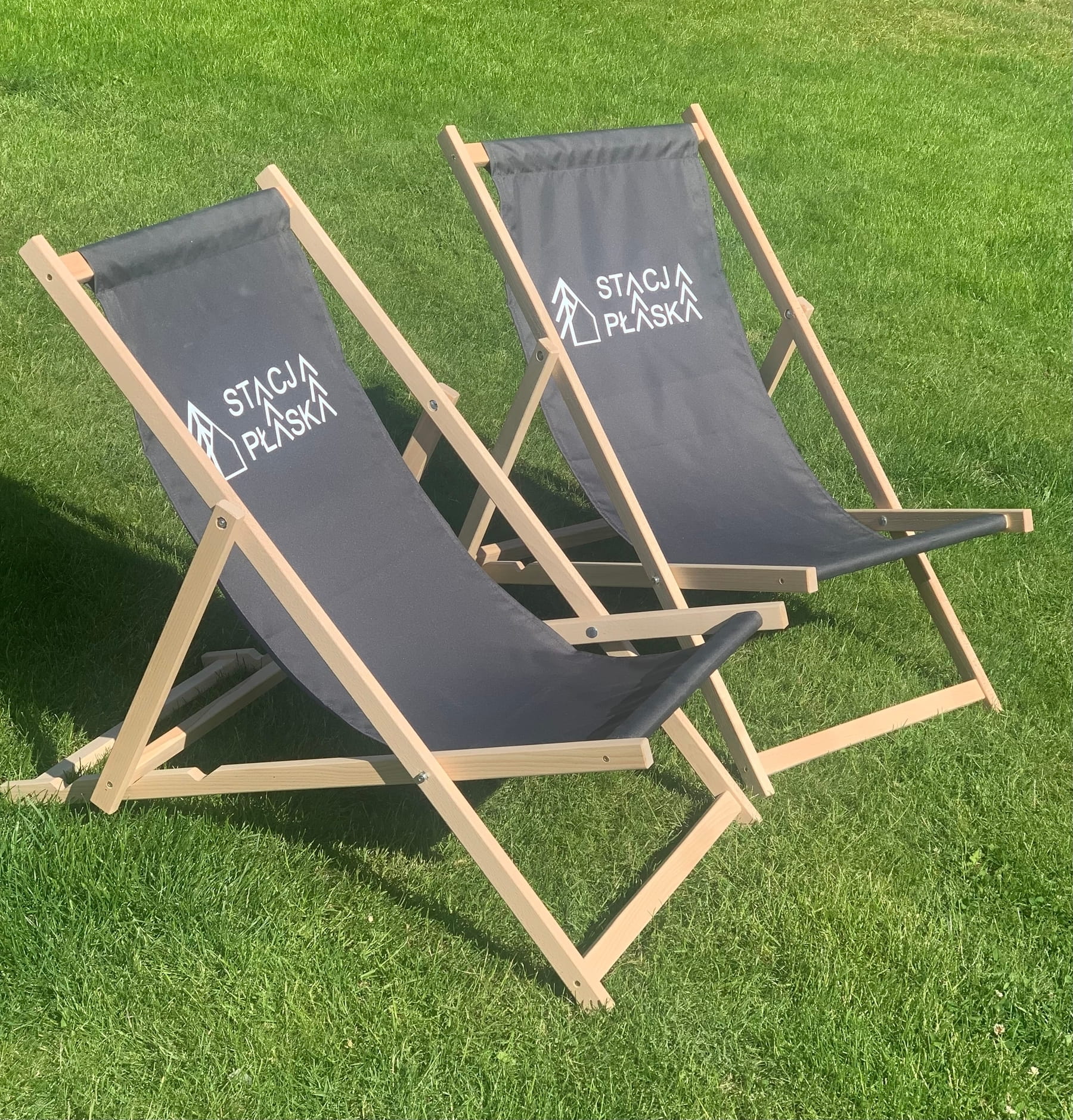 Bardzo wytrzymały leżak reklamowy z mocnego drewna - wytrzymałość do 120 kg!